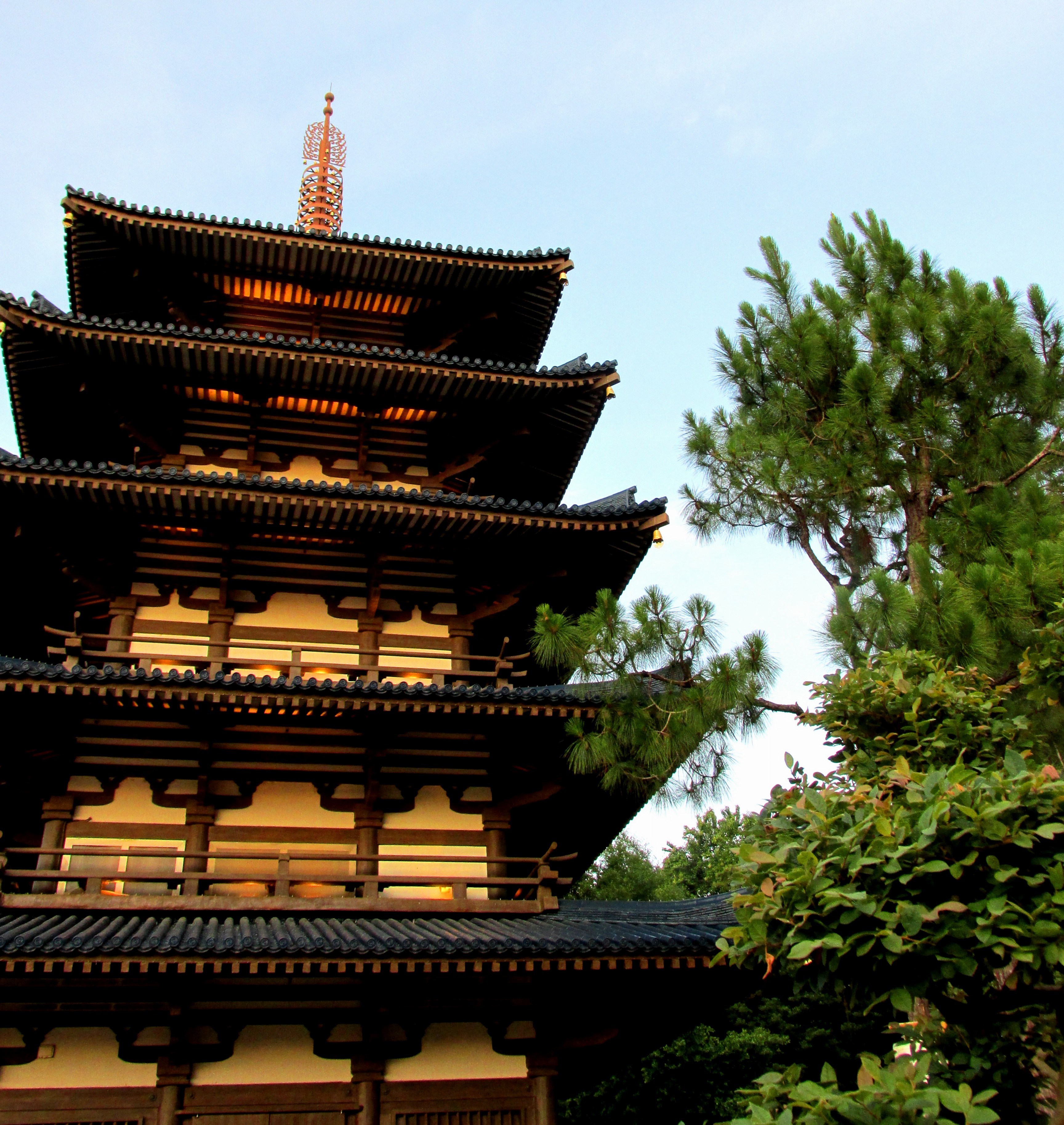 Each story of the pagoda in the Japan Pavilion in World Showcase at Epcot represents one of the five elements in the Buddhist Universe. In order from the bottom to top they are earth, water, fire, wind, and heaven.