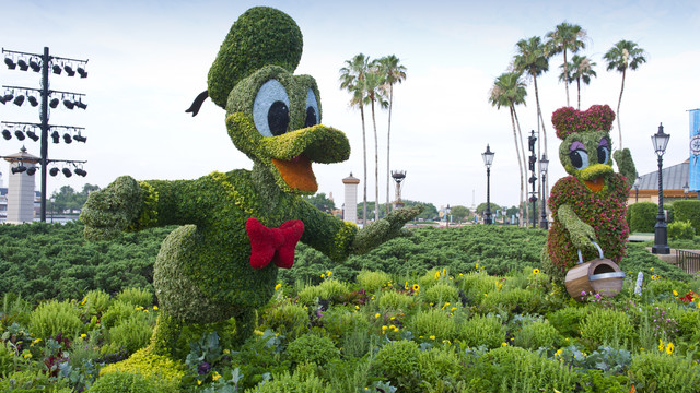 Topiaries of Donald Duck and nephews Huey, Dewey and Louie will share Future World space in front of Spaceship Earth with Chip and Dale for a “Fresh Epcot” selfie and family photo opportunity.