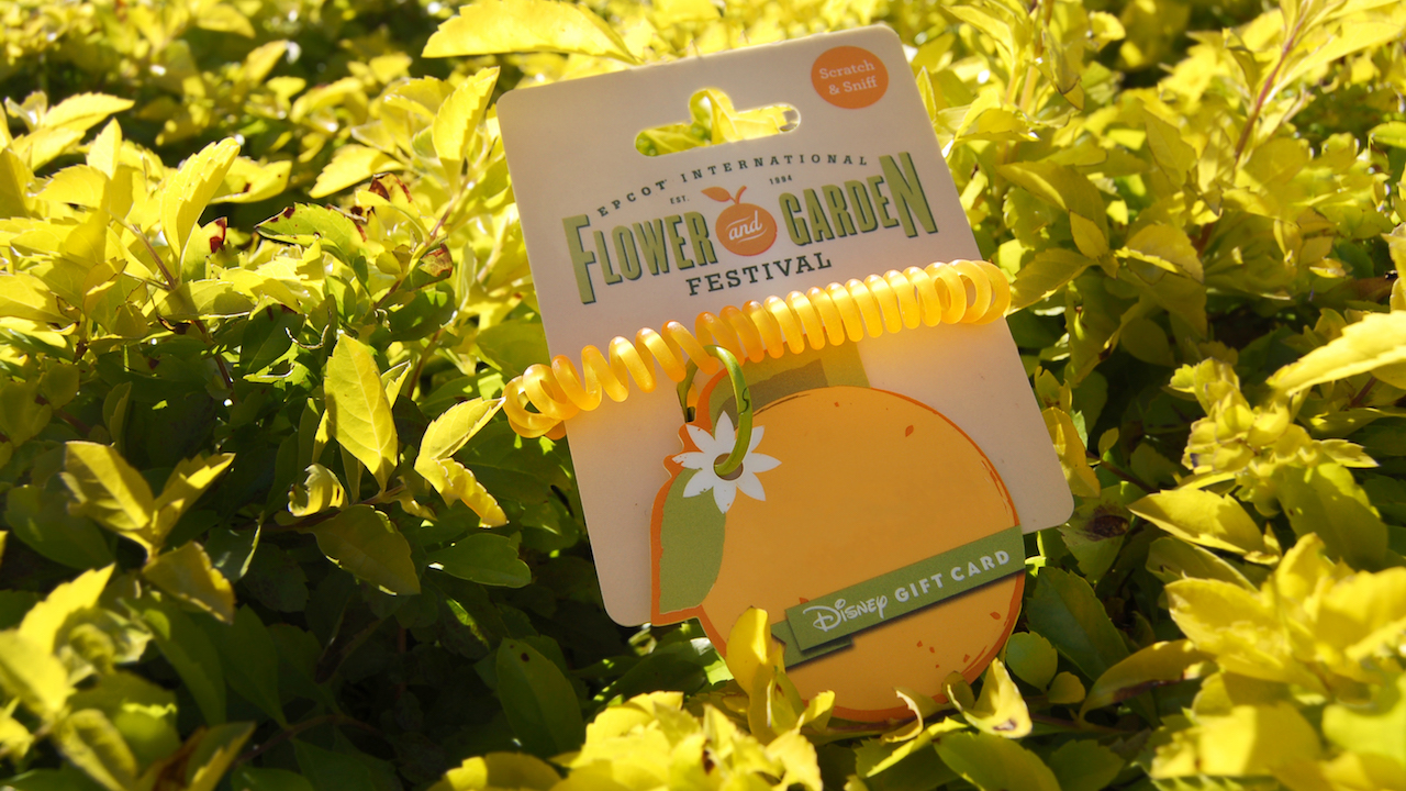 For this year’s event, Disney is offering a brand new orange-scented (think Soarin’) mini gift card with an exclusive Epcot International Flower & Garden Festival design and wrist strap. You can activate this Disney Gift Card with as little as $15 and reload it as many times as you would like.