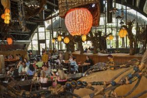 The interior has been transformed with colorful Na’vi items filling the walls and hanging from the ceiling – hand-woven tapestries, natural Pandoran elements and cooking tools decorate the interior.