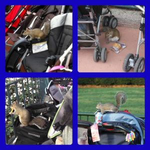 If you are feeding your kids while they ride in the stroller throughout the theme parks, put away all of the food and leave nothing on the tray or in sight when you step inside an attraction or a store. You wouldn’t believe the boldness of some of the squirrels and birds in Disney World. It is not uncommon to see a determined bird swoop down and snatch an unattended goldfish cracker off of a stroller tray. On our last trip I was astonished by a particularly resourceful squirrel that we witnessed digging inside grocery bags in some unsuspecting guest’s stroller basket and removing food. We were able to shoo him away, but not before he made off with what looked to be a full-size sandwich!