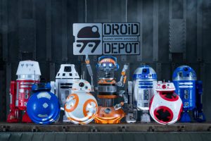 The Droid Depot invites guests to construct their own astromech droids. Patrons pick pieces off a conveyor belt to build one of two core models (R-series or BB-series) and they can customize their droids with various parts and colors. These droids interact with elements throughout the land, enhancing guests’ adventures. Additional accessories can be added to further customize these new friends. In addition, the Droid Depot offers pre-built droids, droid-inspired toys and apparel, and more.