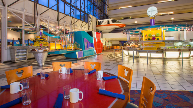 - Chef Mickey’s Located at Disney’s Contemporary Resort, this is one of the most popular character meals in all of Disney World. This restaurant serves up a buffet style breakfast or dinner filled with American cuisine. As with most of the character meals, the food is tasty and plentiful, but it is much more about the experience. The location offers beautiful views of Bay Lake and the exciting sight of the monorail speeding along just above you! Here you will get to hang out with the Fab Five (Mickey, Minnie, Donald, Pluto and Goofy) when they come by your table for photos and autographs. Every so often the song “Celebrate with Mickey Mouse” starts playing and the entire restaurant erupts in celebration complete with napkin twirling and dancing! This place is loud and full of excitement. Definitely book this reservation at 180 days out!