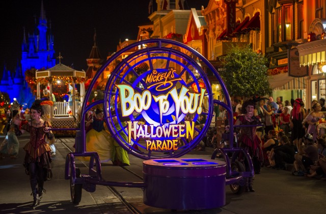 Happy HalloWishes This fireworks spectacle high above the Cinderella Castle lights the night. Guests are encouraged to sing along with some of the most infamous Disney Villains, including Cruella de Vil, Jafar and Oogie Boogie. Creepy colors crawl over the castle, a spell is cast and it’s every guest for themselves.- Mickey’s “Boo-to-You” Halloween Parade Led by the Headless Horseman, it’s masquerade mania as favorite Disney characters dress up for the occasion and ghostly floats bring the frights and sounds of the season to Main Street, U.S.A. and other Magic Kingdom viewing locations.