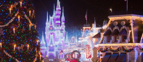 With glittery Cinderella Castle as its centerpiece, Magic Kingdom shines its brightest during the holidays. Guests will be swept into a magical scene of seasonal music, characters in their festive finery and fireworks bursting above. During