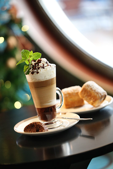 Espresso, peppermint, chocolate sauce and steamed milk.