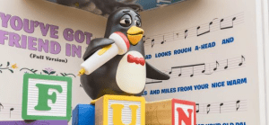 When guests step into Roundup Rodeo BBQ, they become Andy’s honorary toys. Arriving in the dining room, they enter a scene depicting a toy rodeo in full swing and come face-to-face with life-size figures. Jessie and Trixie take the reins in the first dining space, while Bo Peep and her sheep command center stage in the second.